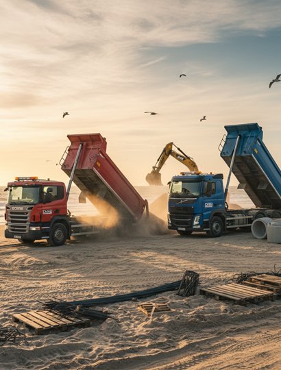 Specialists in transporting aggregates, sand, and other raw materials for block and cement production.